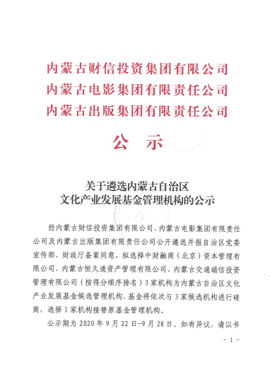 關于遴選內蒙古自治區文化產業發展基金管理機構的公示
